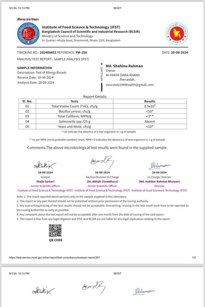 শতভাগ পরিক্ষিত এবং সম্পুর্ণ প্রাকৃতিক উপায়ে এলার্জি, চুলকানি, হাঁচি, কাশি, হাপানি শ্বাসকষ্ট থেকে মুক্তি লাভের শতভাগ কার্যকরী সমাধান এলার্জি বিনাশ এবং ল্যাব টেস্টেট